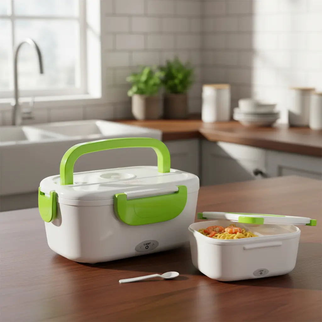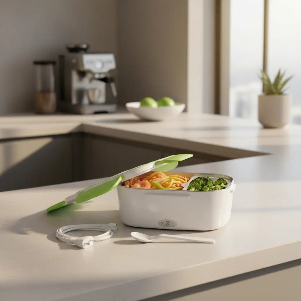 La lonchera portátil calentadora que transforma cualquier lugar en tu momento perfecto para comer. Solo conéctala, espera unos minutos y disfruta tu comida caliente, fresca y lista para comer.